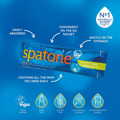Spatone源自英國威爾斯北部SNOWDONIA心臟地帶的卓妃水泉 (Trefriw Wells Spa) 的泉水,以蘊含極豐富天然鐵質聞名世界。Spatone容易被身體吸收,吸收率約40%,添加Vitamin C,補充血氣及能量,同時有助能量釋放及維持免疫系統健康,使人活力充沛,紅粉緋緋。 鐵質是構成紅...